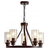 Farmhouse Chandelier Lighting Round 5 Lights Oil Rubbed Bronze with Glass Shade Ceiling Hanging Vintage Rustic Light Fixture for Dining Room Living Room Foyer Porch Kitchen Island