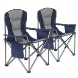 2 PACK Oversized Folding Camping Chair With Cooler Bag Thicken Padded Chair Heavy-Duty Linearity Design