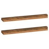 HOOBRO Floating Shelves for Wall, Wall Mounted Shelf Set of 2, 55" Hanging Shelf with Invisible Brackets, for Wall in Bathroom, Bedroom, Toilet, Kitchen, Living Room, Office, Rustic Brown BF140BJP201