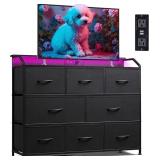 【✨Modern Customizable LED Light】This wide fabric dresser is equipped with countless (at least 31) light modes and colors, you can freely adjust the brightness and colors for any scene. The dresser with charging station has 2 USB ports, so you can easily charge your media devices without the need for extra extension cords.