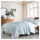 (2 SETS!) HORIMOTE HOME 100% Cotton Quilt Set Queen Size, Baby Blue Pre-Washed 3-Piece Bedspread Coverlet Set, Cozy Lightweight Stitching Bedding Cover with 2 Shams in Geometric Pattern for All Season