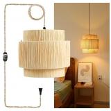 𝐅𝐔𝐍𝐂𝐓𝐈𝐎𝐍𝐀𝐋 & 𝐃𝐄𝐂𝐎𝐑𝐀𝐓𝐈𝐕𝐄: The layered raffia shade enhances warm, even lighting and reduces harsh glare, making it a perfect hanging light for living room, kitchen island, dining areas, hallways, or bedroom settings. When illuminated, the plug in ceiling light casts beautiful, intricate shadow patterns on your walls and ceiling creating a rustic, class romance warmth and artistic atmosphere. The hanging pendant light plug in is FULLY dimmable so it is super convenient to adjust the light intensity for a cozy or warm vibe. More than just a light, this swag lamp is an essential piece of wabi sabi home decor.