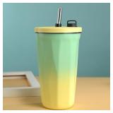 *2 PACK!* Wosta Vacuum-Insulated Tumbler Cup with Straw, Stainless Steel, Wide Mouth, Home Office, Outdoor, Retains Heat and Cold, Lid Included, 20.3 fl oz (600 mL), Girls, Boys (Green Gradient)