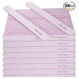 Nail File (200 Pcs), Bulk Emery Board Nail Files for Acrylic Nails and Natural Nails, 100/180 Grit Double Sided Emory Boards for Gel Nail Professional Reusable Washable Manicure Pedicure Kit Set Gray