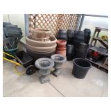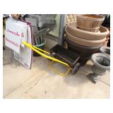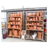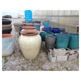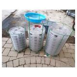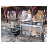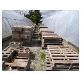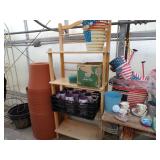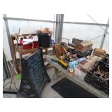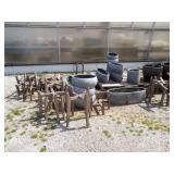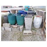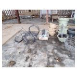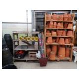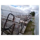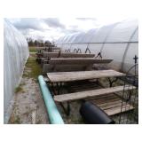 3 – 30’ x 96’ greenhouses & 1 - 30’ x 102’ greenhouse (to be removed), 6 section oval 4 tier gal. plant display stand, various greenhouse tables & display racks & benches; field boxes, over 125 wooden pallets, approx. 750 - 6x8x16 concrete blocks, approx. 40 - 8x8x16 concrete blocks, 3 skids of steel “T” fence posts, 9 picnic tables, 14 – 4’ x 16’ cattle panels, 10+ greenhouse carts, 3 – 30” x 46” greenhouse wagons, 100+ sm. sq. bales of straw, several fountains, 8’ x 18’ display shelter, LARGE QUANTITY of various sizes from small to extra large planters & pots; ceramic, concrete, metal, plastic, resin, clay, & wooden, 12”, 14” & 16” dia. planter casters, 10 wooden trellis, lots of various metal & steel trellis, plant hangers, new watering tools, 24 NIB pocket knives, Fashion Farm sweat shirts, Pumpkin Fantasyland frisbees, planters & display racks, approx.. 8’ x 8’ wooden corner display with pergola top, 8 – wooden 4’ x 10’ display tables, 7 – 5’ gal steel adjustable height display racks, lots of gal. steel sign holders,