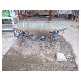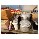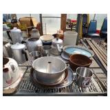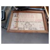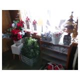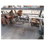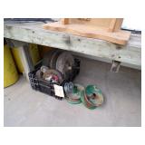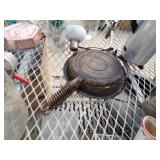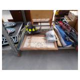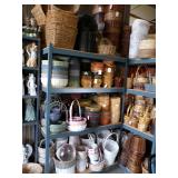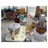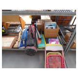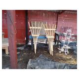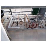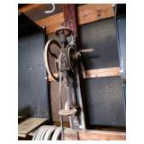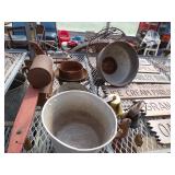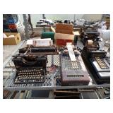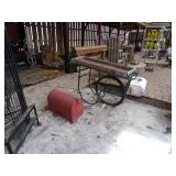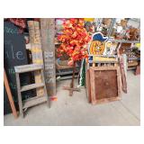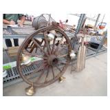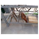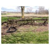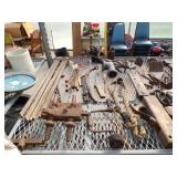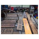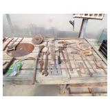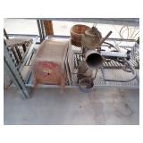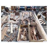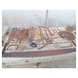 5 ice cream tables & chair sets, 48 & 54 drawer seed cabinets, 2 man cross cut saw, old typewriters, old adding machines, nail puller, wood clamps, wooden wagon wheel, cast iron kettle, egg basket, drift wood, old wrenches, FORD axle cap, brass soldering torch, Wagner waffle iron, milk bottles, blue canning jars, carpet beaters, sad irons, wooden block planes, hand planter, antique stroller, old bikes, 9 milk cans, gal. tub, canners, propane orchard gun, wooden doors, pitcher pumps, hand hewn barn beams, wooden windows, candy display rack, child’s sled, mint bucket, metal tins, & lots more.
