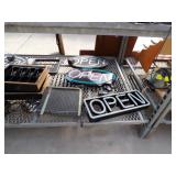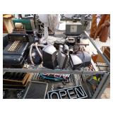 True double door display cooler, True 8’ display cooler, large & smaller chest style deep freeze, 2-60’ wide display freezers, warming cabinet, 72’ tall aluminum enclosed end load bun pan cart, SS restaurant cart, 2 refrigerators, restaurant chairs, high chair, 5 neon “OPEN” signs, 5 cash registers, cash trays, digital scales, 3 credit card readers, Bunn coffee maker, KitchenAid mixer, 3 CAMBROs, 2 insulated drink dispensers, 2 pressure cookers, fryer baskets, condiment dispensers, Hot Dog maker, Chafing dishes & stands, pots, pans, tumblers, table & chairs, other restaurant supplies, trash bins, pump organ,
