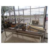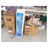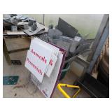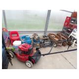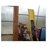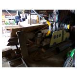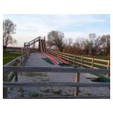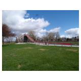 Famous Fashion Farm Giant Mega Slide (includes slide, tower, climbing ladder, & wooden fencing), 3 point 2 person planter, 60 gallon upright air compressor, vise, grinder, wall mount drill press, Craftsman radial arm saw, 8’ fiberglass ladder, wooden step ladders, ext ladder, Catch’em alive trap, snow fence, 2 barn scales, hand fertilizer spreader, misc tools, lights, wrenches, sockets, hand saws meat saw, rope, car ramps, hose reels, shop brooms, shovel rakes, post hole digger, chicken wire, 2 push mowers, 2 mail boxes, sail boat on Starcraft trailer (as is), ladders, dog house, ergonomical dental medical stool with 360 degree arm & foot rest,