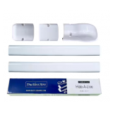 - The Delta Classic 500 alcove shower surround is a 3-piece wall system designed to replace traditional tile or fiberglass shower walls in a standard 48" x 34" alcove. It installs directly to wall studs, creating a rigid, waterproof enclosure without needing cement board or tile work. The high-gloss white acrylic surface is smooth and nonporous, which makes it easy to clean and resistant to mold, mildew, and staining, especially compared to grout-based tile systems.