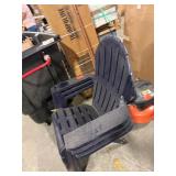 - The Midnight Blue Plastic Adirondack Chair is a simple, weather-resistant outdoor chair designed for comfort and convenience. It’s made from durable molded resin, which makes it lightweight, easy to clean, and resistant to fading or outdoor wear. The classic Adirondack shape gives you a relaxed reclined seating position, and the wide armrests include built-in holders for a cup and phone, making it especially useful for patios, porches, fire pits, or backyard lounging.