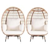 (11). OTSUN Egg Chair Set of 2, Oversized Wicker Egg Basket Chair with 4 Cushions, 440lb Capacity, Outdoor Indoor Lounge for Living Room, Patio, Balcony, Backyard, Ivory