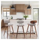 Fox Modern Counter Height Bar Stool with Speckled Brown Upholstered Seat and Walnut Wood Frame Set of 4