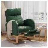 Garvee Corduroy Rocking Chair with Footrest Modern Glider Chair with Side Pockets and Pillow Rocker Chair for Living Room Bedroom Green