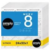 Simply 24 in. x 30 in. x 1 in. MERV 8 FPR 5 Pleated Furnace Air Filter (12-Pack)