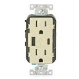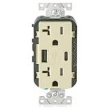Leviton 20 Amp Type A and Type-C USB Charger/Tamper Resistant Receptacle, Light Almond T5833-T