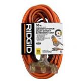 RIDGID 50 ft. 12/3 Heavy Duty Indoor/Outdoor Extension Cord with Tritap Lighted End, Orange/Grey