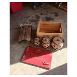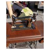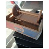 • ANTIQUES & COLLECTABLES • • Burled walnut china cabinet w/ paneled doors • Red Ryder BB guns (2) • Shiner beer & other signs • Singer treadle sewing machine • 1940s mauve Victorian couch • Old brass scales • Old quilt • Aladdin lamp shades • Old candle sticks • Vintage linens • Old dolls • Old buttons • Vintage flashlights • Enamelware • Brass wine rack • Wood cash drawer • Rolling pin • Dresser mirrors • Small stools • Match holders • Hook rug • Art deco lighted picture • Ornate wall pictures • Old mirrors • Mallets • Tapestries • Washstand yoke • Kerosene lamps • Chalk figures • Plant stand • Wicker stand • Oak straight back chairs (4) • Bark basket • Stereoscope • Split oak basket • Cast iron water bucket • Old wood boxes • Camp cot • 10-gallon wood whiskey barrel • Gizzard basket • Brass water bucket • Signed & numbered pictures • Dinner bell • Small sled • Primitive tools • Wood doll wagon • Old books • Deer head mount • Wood Pepsi crate • MISC. •