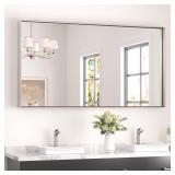 Keonjinn 55 x 30 In Brushed Nickel Bathroom Mirror for Wall, Rectangular Metal Framed Large Silver Vanity Mirror for Over Sink Square Corner Aluminum Alloy Modern Rectangle Mirror(Horizontal/Vertical)