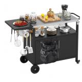 Outdoor Grill Cart with Storage and Folding Stainless Steel Top