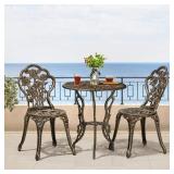 Yaheetech 3-Piece Outdoor Bistro Set w/Rose Design, Rust-Resistant Cast Aluminum Table and Chairs w/Umbrella Hole for Balcony Backyard Garden