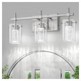 【Modern Versatile Design】Modern bubble cylindrical crystals and round clear glass covers, which will add a touch of glamour and sophistication to your bathroom. And you can install the fixture with bulbs facing up or down, depending on your style preference.