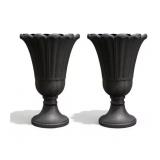 Petal Shape 15.75 in. W x 23.62 in. H Large Black Plastic Planter Urns with Drainage Hole, Set of 2
