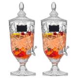 Zhehao 2 Pcs Drink Dispensers for Parties 1.3 Gallon Glass Beverage Dispenser Clear Vintage Crystal Iced Beverage Dispenser with Spigot and 2 Wooden Chalkboard Wide Mouth Beverage Server for Bar Home