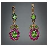Orange maple leaf earrings with cubic zirconia stones on cuff.