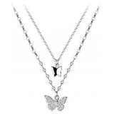 Sterling Silver Butterfly Necklace, Vintage Layered Crystal Necklace for Women & Teen Girls