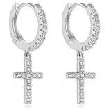 Dainty Huggie Hoop Dangle Earrings for Women, Small Hypoallergenic Hoop Earring with Charm Cross