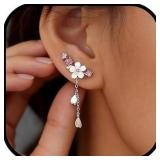 Cherry Blossom Ear Climber Earrings for Women Gift Idea That Adds A Soft Floral Touch To Date Night Dinner Parties And Everyday Outfits