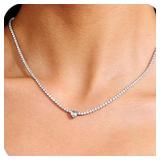 Clear/White heart shaped pendant with tennis chain for an elegant look.