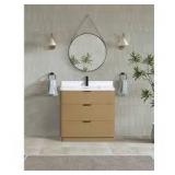 (47). Ari Kitchen and Bath Calamigo 36 W x 22 in D x 34.5 H Single Bath Vanity in Oak with Engineered Quartz Top in White with White Basin