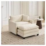 Noble House Estevao Beige Chenille Arm Chair, Comfy Double Layer Upholstered Seat Cushion