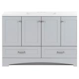 (206) Spring Mill Cabinets Emlyn 48 Inch Bathroom Vanity with White Single-Sink Top, 3 Cabinets, 2 Shelves, 2 Drawers, 48.5" W x 18.75" D x 32.89" H, Pearl Gray