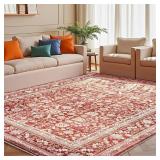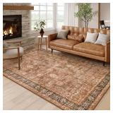 Morebes Vintage Living Room Rug,Washable Large Area Rug 6x9 Non Slip,Distressed Soft Floral Dorm Boho Rugs,Indoor Accent Floor Carpet for Nursery Kitchen Coffee Table Dining,Brown