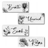 Bathroom Decor 4pcs Bathroom Wall Decor, Bathroom Decor Wall Art for Home, Farmhouse Bathroom Decor Hanging Signs for Bathroom Laundry - Black