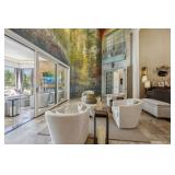 From the moment you step inside, the home unfolds with soaring ceilings, rich hardwoods, custom millwork, exposed brick, and a signature curved staircase—all anchored by walls of windows flooding the home with natural light. The main-level primary suite is exactly what a luxury buyer expects—and more: