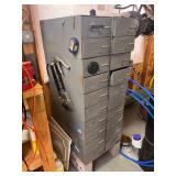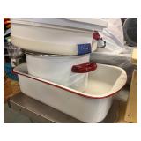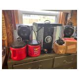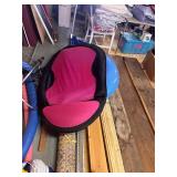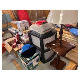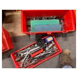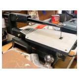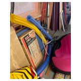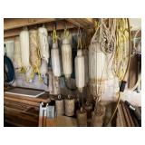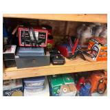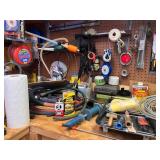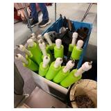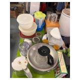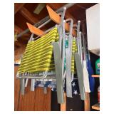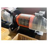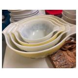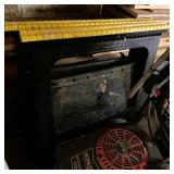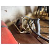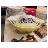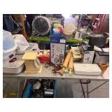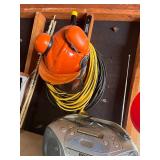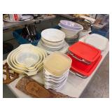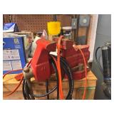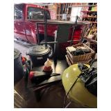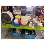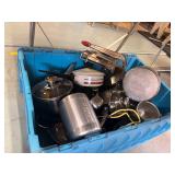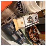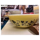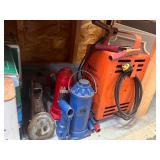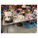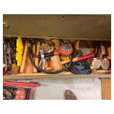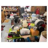 Household, Tools & Misc. Pyrex Gooseberry Yellow & Black Cinderella 4-bowl set, Corning Ware, Pyrex casserole bowls, pots pans & misc. household, lot small kitchen appliances, aluminum bean pot w/lid, enamel pans, assorted floor & table fans, cast iron Lodge skillets, leather recliner, lot life vest & floaties, Lot music CDs, Sony boom box w/CD changer, 2 – 110v window ac units, 20’ alum. Extension ladder, Vintage “Blue Streak” ignition parts wall cabinet, lg GE vintage electric shop heater, bug zapper, Pull type yard cart, Werner 6’ fiberglass step ladder, Craftsman bench top belt/disk sander, Craftsman bench top scroll saw, bench top drill press w/machinist vise, 3ton floor jack, 2 - 20gal portable air compressors, 6” B&D bench grinder, misc. small battery chargers, Cordless B&D chain saw, lot plastic fuel jugs, lot dock/boat bumpers, plastic sawhorses, long handled tools, 5gal metal shop-vac, LARGE lot hand tools, lot electrical extension cords, Misc. pipe & bar clamps, 2 - 5” bench vise, lot fluids & sprays, lot bottle jacks, C-clamps, Lot scrap copper & wire, large lot hardware, grease gun. Wooden ATV ramps, appliance dolly, Jack stands, roll around toolbox, lot lawn chairs,