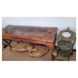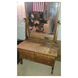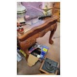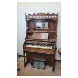 ANTIQUES & COLLECTIBLES: FURN: Walnut & Burl Victorian Cylinder Desk (99x39x22), Oak Quartersawn Empire 2-Door China Cabinet, Oak Hoosier Style Kitchen Cabinet, Fancy Victorian Oak Pump Organ, Michigan Economic Oak Ice Box, Modern Oak Clawfoot Dining Table w/Leaf, (4) Oak Pressback Dining Chairs, Oak Stick Hall Tree, Brinktun Pool Table, Ornate Brass 3-tier Stand, Child's Roll Top, Modern Chippendale Style Glass Top Sofa Table & (2) End Stands, (4pc) Modern Bookcase Set, Modern Flat Screen TV Stand, early School Desk & More! SMALLS: Ingraham Mantle Clock, Modern DA Oak Regulator School Clock, DA Modern Regulator Clock, 1960's Sessions Desk Clock, Oil Lamp Collection, Bracket Oil Lamp, Early Chalkware Windmill Desk Lamp, Primitives, few Crocks, Wheat Cradle, Woodman Bee Smoker, Canes, Soft Goods, Rag Rugs, Approx Srv for 8 Community Plate Flatware, Glassware, EAPG, Iris & Herringbone Glass, Cookie Jars, Salt & Pepper Collection, Wall Art, Nice selection of 33-1/3 Record Albums (Mostly Rock), RCA Video Discs, Laser Discs, Books, 1860 Bible, Sheet Music, Buck Owens & Others Scrap Books, Kenmore Washer & Electric Dryer, Household, Kitchenware, Holiday, Singer 9022 & 9030 Sewing Machines, Mt Dew Roller Cooler, Aquariums, 7-panel Dog Fence (68tx58w) & More!