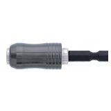 Introducing the TerminatorBlue 2.4 Inch Quick-Release Locking Bit-Holder from Wiha Tools. The terminator-blue quick-release locking bit holder has a standard 1/4-inch hex drive and features an aluminum bit-locking sleeve for a secure hold.