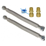 The Eastman™ 1/2-IN OD gas connector is designed to connect most major brands of water heaters, dryers, and moderate usage appliances to a shut-off valve. The connector is certified for use with most water heaters and dryers with gas ratings up to 49,100 BTUs.