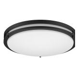 The Project Source 10.37-in W black outdoor flush-mount light with white frosted glass is the perfect flush mount fixture for the garage, or covered outdoor porch. This fixture is damp rated and compatible with dimmable circuits when used with dimmable bulbs.
