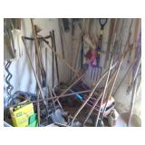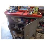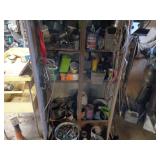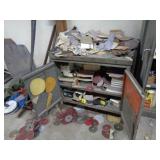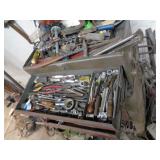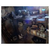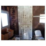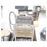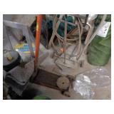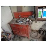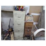 Shaw Walker wood 4 drawer file cabinet; old 4 door kitchen cabinet; love seat; lawn ornaments; old platform rocker; variety of stones for lapidary use; 12 ft. V alum. boat; misc. household. NOTE: Small amount of household first then to tools, sawmill will sell between 5 & 5:30 pm.