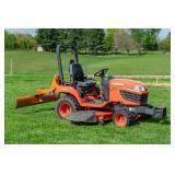 KUBOTA BX2660 4WD COMPACT LAWN TRACTOR YEAR: 2011 MAKE: Kubota MODEL: BX2660 SERIAL NO: 58665 STYLE: Compact Utility Tractor HOURS: 892.9 ENGINE: Kubota D1005 3-cylinder diesel engine POWER: 25.5 gross horsepower, with 19.5 PTO horsepower. ENGINE CONDITION: Running DRIVETRAIN: 4WD TRANSMISSION: Hydrostatic (HST) with high/low range (2 forward, 2 reverse gears) ATTACHMENTS: Kubota 60" RCK60B23BX Mid-Mount Belly Mower, Woods RBC60 Grader Blade, Tractor Weights SELLER'S NOTE: Garage Kept, Sells with Reserve.