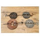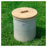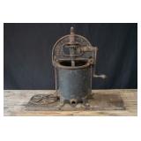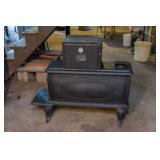 CAST IRON & STONEWARE Belknap Bluegrass Home No.36 L Cast Iron Wood Stove with Stove Top Oven, Enterprise Cast Iron Lard Press, King Crown 12-Gallon Stoneware Crock, Louisville Pottery Blue Indian Head 10-Gallon Stoneware Crock, King Crown 10-Gallon Stoneware Crock, Cast Iron Skillet & Chicken Fryer, Cast Iron Graduated Skillets, 3-Gallon Stoneware Crock & Pacific 1-Gallon Stoneware Crock, Two Vintage Stoneware Crocks, Griswold & Dieters Foundry Cast Iron Stove Dampers.