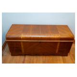 FURNITURE C.L. Crabtree Cedar Chest, Lane Waterfall Cedar Chest, Two Wood Frame Upholstered Armchairs, 1940s Mahogany Bedroom Furniture, 1930s Wood Captains Dining Chair, 1950's Solid Cedar Chest, Petite Pine 4-Drawer Chest, Maple Chest of Drawers & Dresser, Entertainment Console & Quartz Top Plant Stand, 1950's End Table, Antique Single Drawer Turned Leg Stand Table, 1950's Maple Dresser with Mirror and End Table, Antique Steamer Trunk, Folding TV Tray Tables, Duncan Phyfe Drum Table, Console Table & 1980's Table, Norwalk Furniture Floral Upholstered Sofa and Wingback Chair, Pair of Burgundy Upholstered Recliners, 1960's Bookshelf and Storage Cabinet, 1970's Keller China Cabinet, Heavy Duty Round Pedestal Table, 1950s Dinette Table, Mid-Century Modern Coffee Table & Antique Green Painted Caned Rocking Chair.
