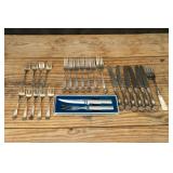 GOLD & SILVER 14K Gold Twisted Rope Necklace, 14K Gold Ring, 10K Gold Ring, 14K/18K Gold Ring, Seven Sterling Silver Spoons, Fourteen Sterling Silver Spoons & Lunt Sterling Handle Butter Knives.