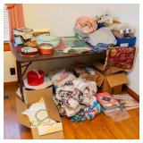 HOUSEHOLD Coleman Gas Lantern and Camp Stove, Meisselbach Catucci Symploreel No 257 Casting Fishing Reel, Cammo Center Flite Compound Bow, Three Table Lamps, Assortment of Ransburg Painted Pottery & Others, Black and Gold Floral Pattern Candlesticks and Bowl Console Set, Milk Glass & Brass Table Lamps, Needlepoint Artwork, Closet of Household Items, Four Handmade Afghan Blankets, Collection of Sewing Supplies and Linens, Snapback Hat Collection, Nelco Sierra Ultra Sewing Machine, Religious and Christmas Collectables, Binoculars, Cameras and Clocks, Cherry Arched Pediment Mirror, Electrolux & Robot Roomba Vacuum Cleaners, Closet of Household Items, Two Floor Lamps, Thomas Kinkade Commemorative Hanging Plates, Franklin Mint Carolyn Shores Bird Plates and Home Decor, Don Ensor Framed Prints and Kroger Stained Glass, Ray Harm & Jim Oliver Framed Bird Prints, Botanical and Landscape Scene Framed Prints.