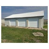 46x46, concrete floor, (2) overhead doors 12x12 & 12x20 w/ electric openers, walk thru door